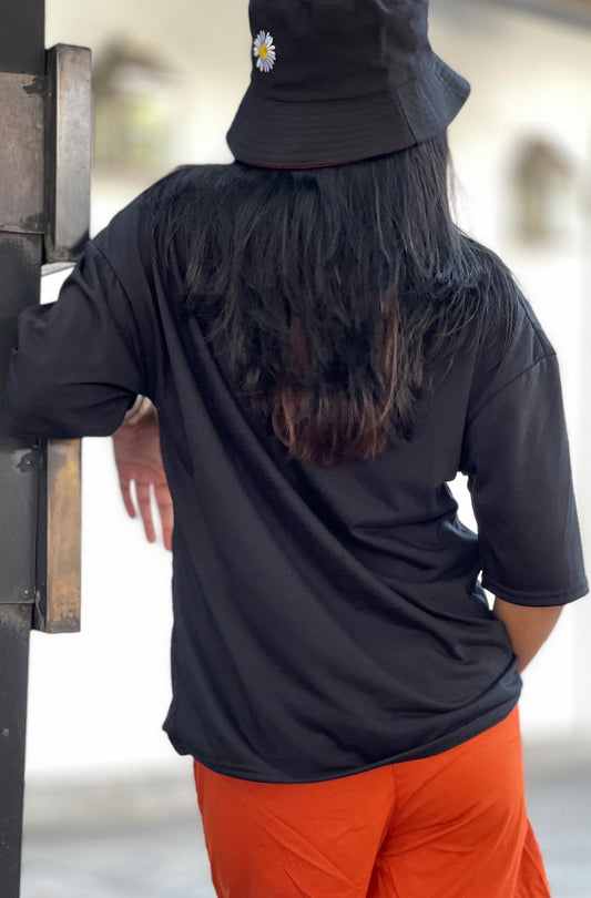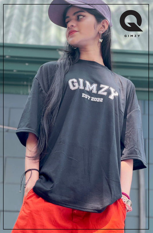 GIMZY Titled Drop Shoulder Black Color Tee | GM183
