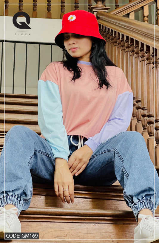 Drop Shoulder Oversized Long Sleeve Multi Color Short T Shirt | GM169