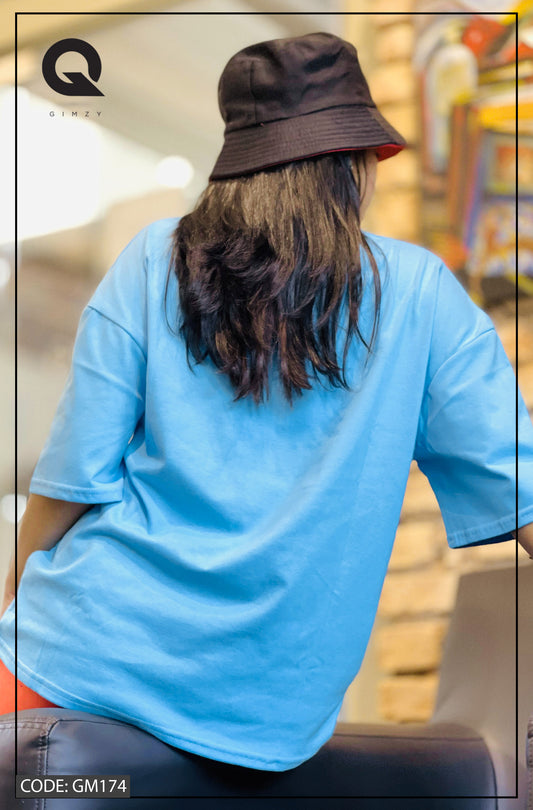 Drop Shoulder Oversized Sky Blue Color T Shirt | GM174