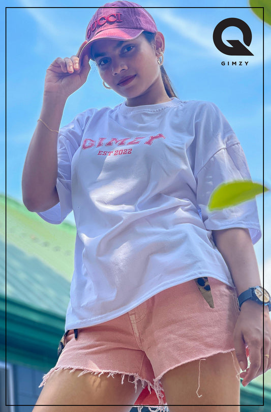 GIMZY Titled Drop Shoulder White Color Tee | GM184
