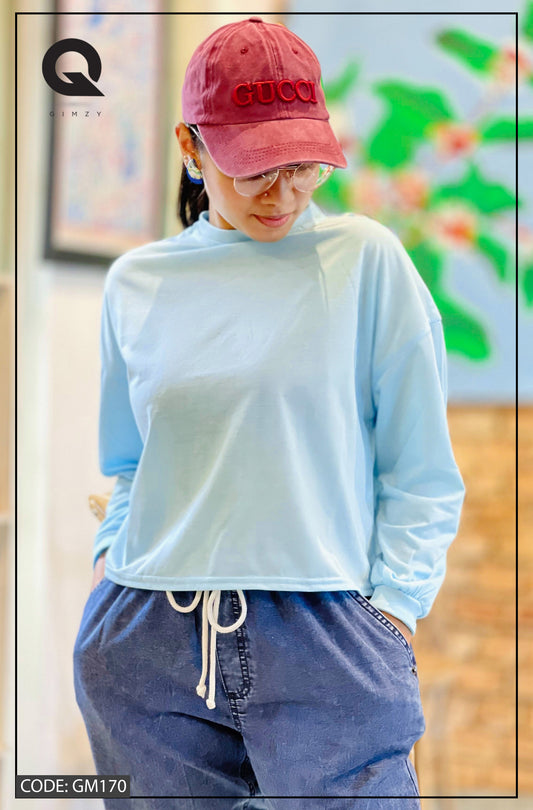 Drop Shoulder Oversized Long Sleeve Light Blue Color Short T Shirt | GM170