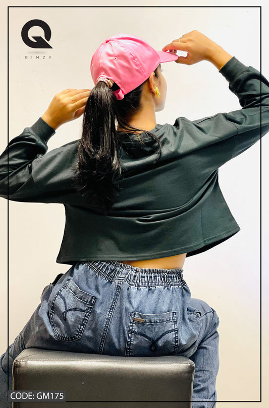 Drop Shoulder Oversized Long Sleeve Pink Color Short T Shirt | GM171