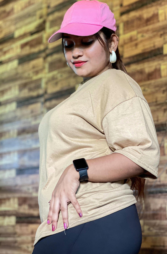 Drop Shoulder Oversized Beige Color T Shirt | GM186