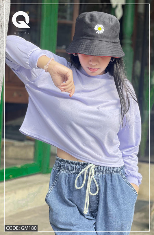 Drop Shoulder Oversized Long Sleeve Light Purple Color Short T Shirt | GM180