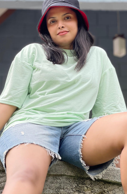 Drop Shoulder Oversized Apple Green Color T Shirt | GM203