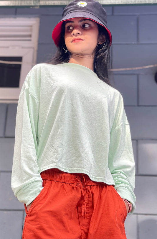 Drop Shoulder Oversized Long Sleeve Apple Green Color Short T Shirt | GM204