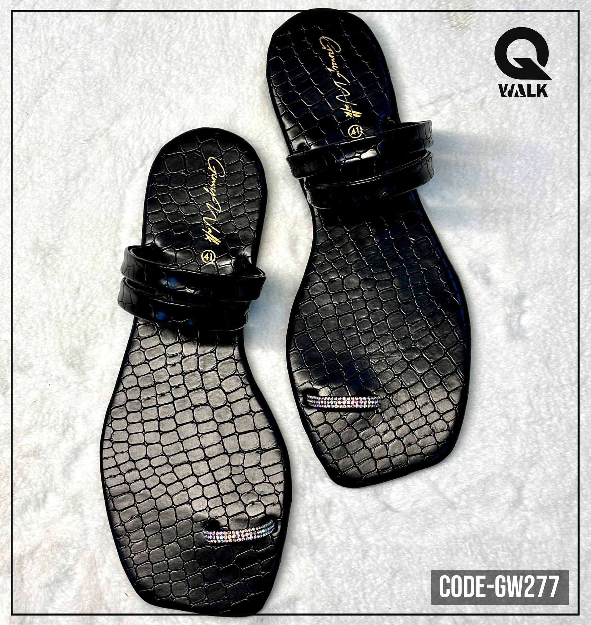 Crocodile Black Color Flat Slipper with Stone Toe | GW277