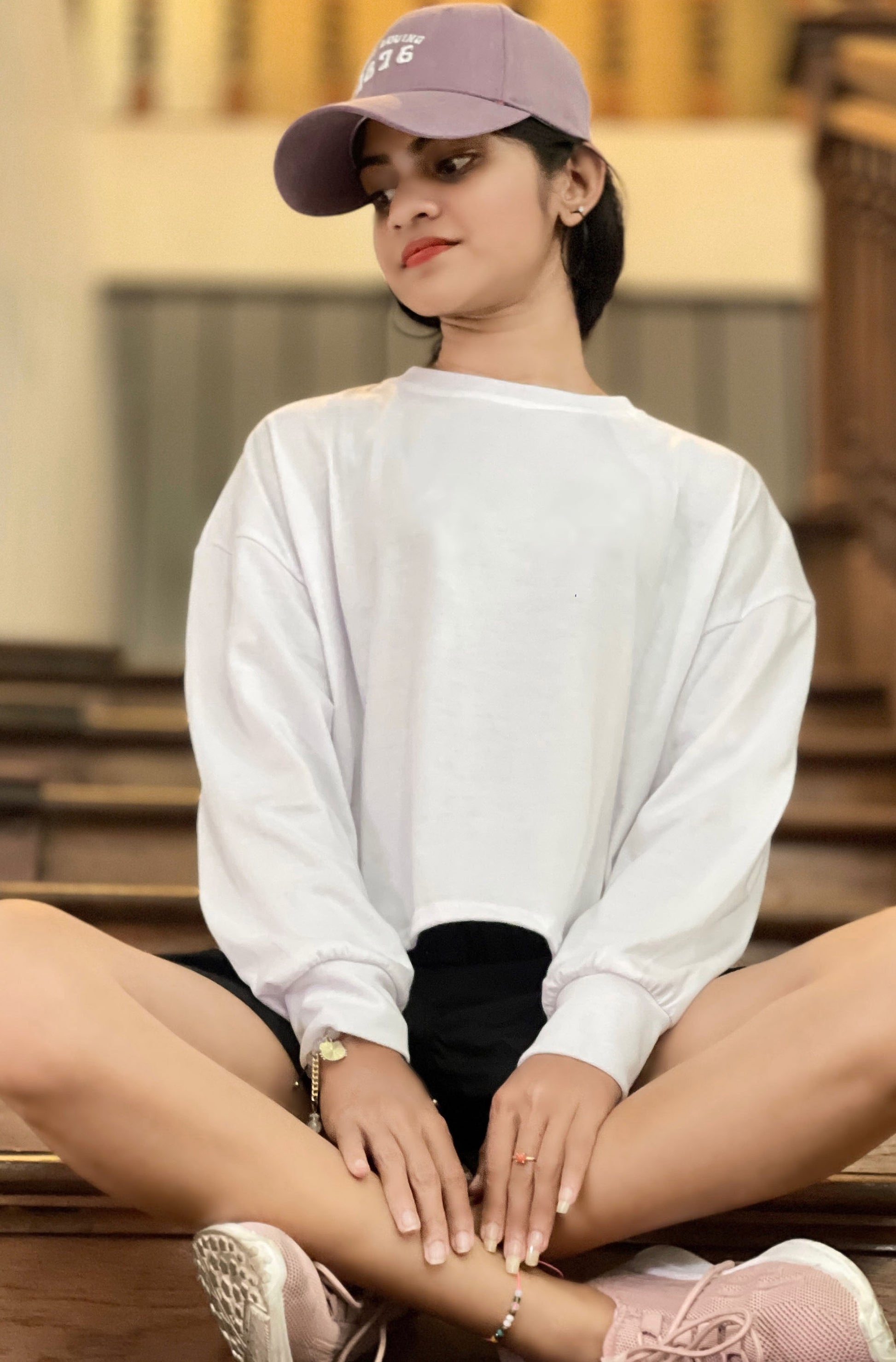 Drop Shoulder Oversized Long Sleeve White Color Short T Shirt | Designed and Made in Sri Lanka