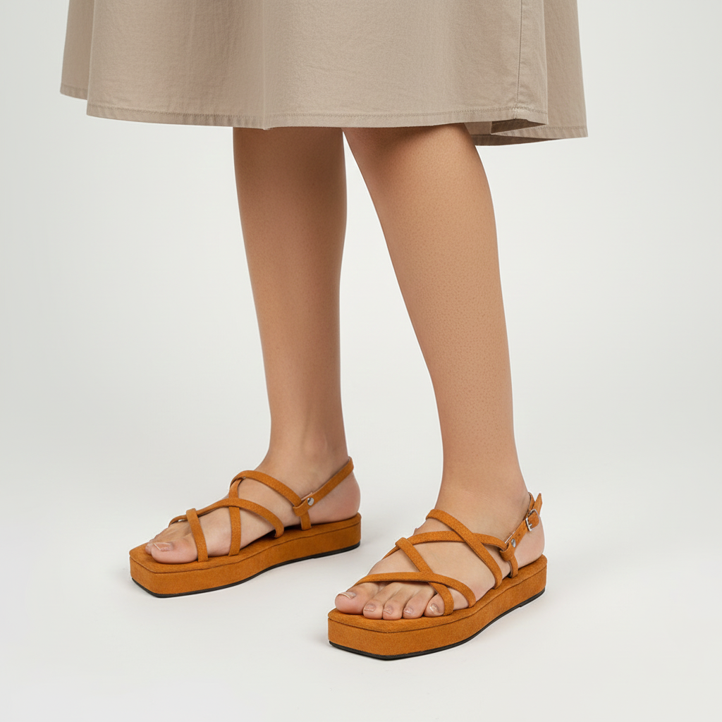 Mustard Color Velvet Flatfoam with Straps | GW331