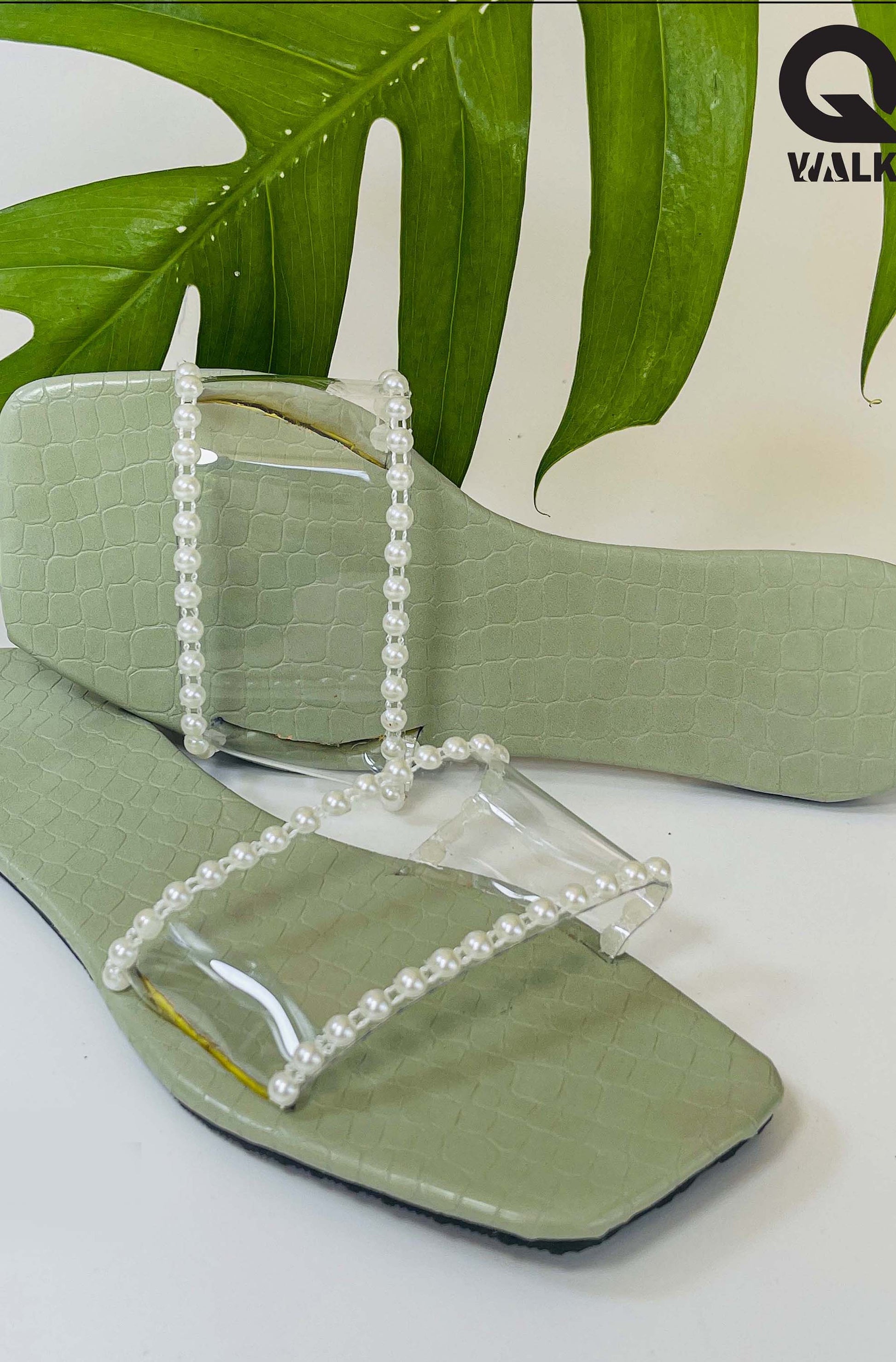 Olive Green Color Transparent Top Open Toe